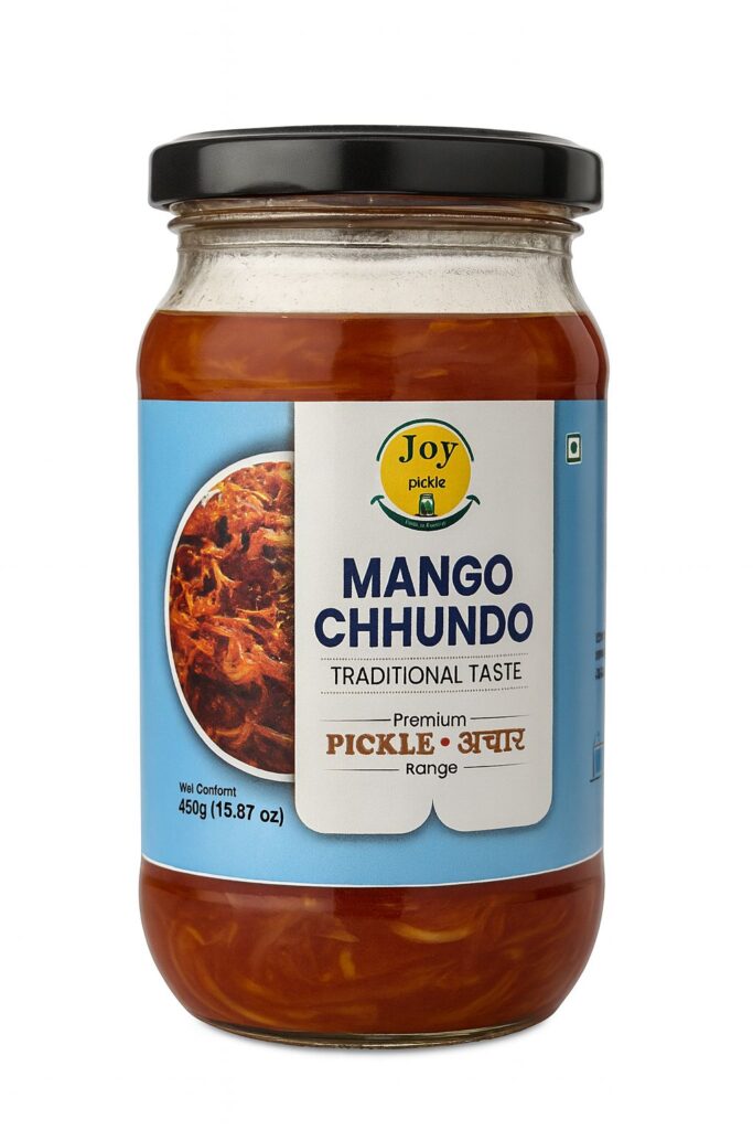 Prepared with finely grated raw mangoes, slow-cooked with pure jaggery and a pinch of spice, Joy Pickles’ Chhundo captures the