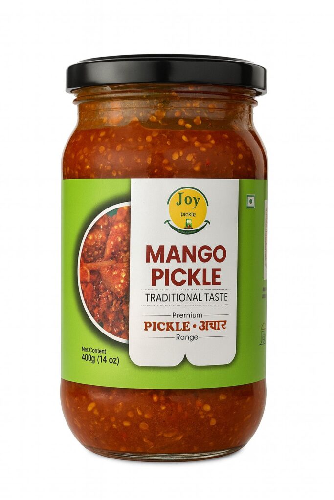 Joy Pickles’ Punjabi Mango Pickle is crafted with farm-fresh raw mangoes, aromatic spices, and mustard oil – just like the