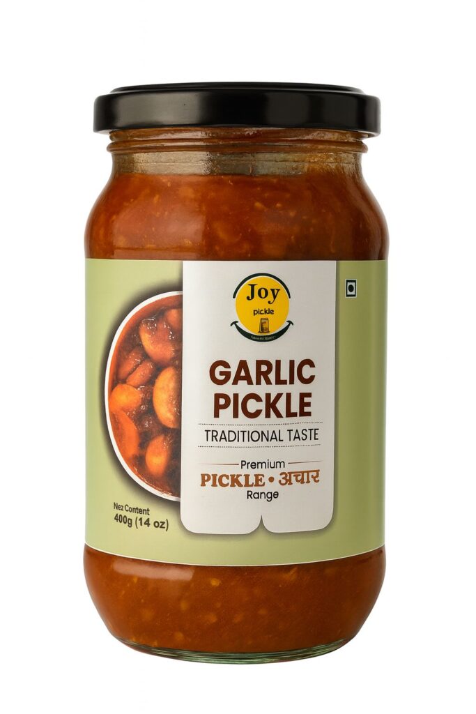 Joy Pickles’ Garlic Pickle (Lasun Athanu) is made with fresh, peeled garlic cloves slow-aged in mustard oil and blended with